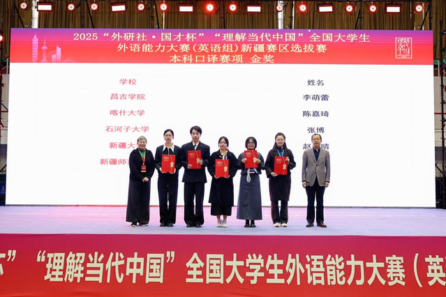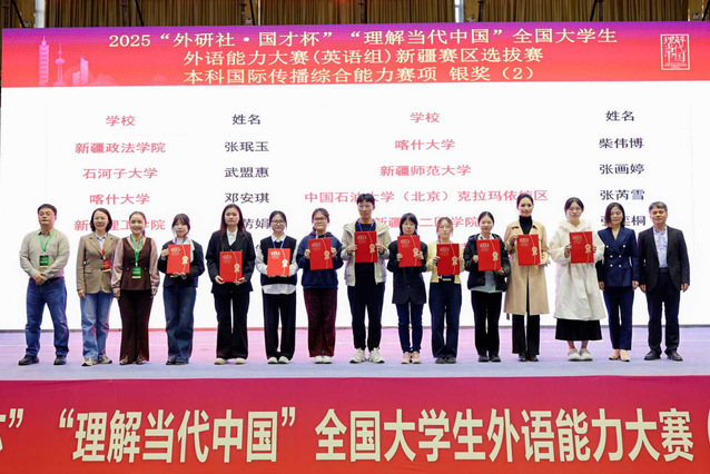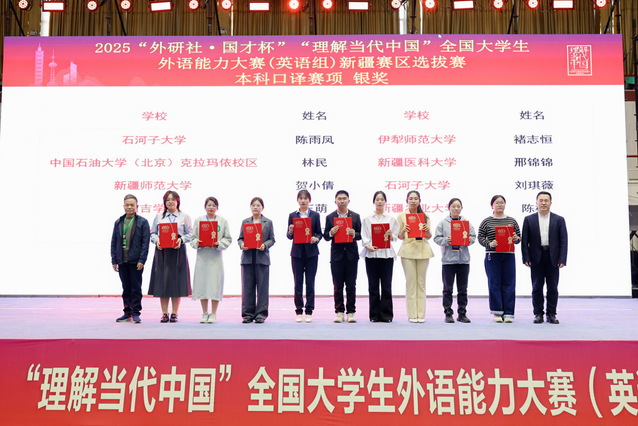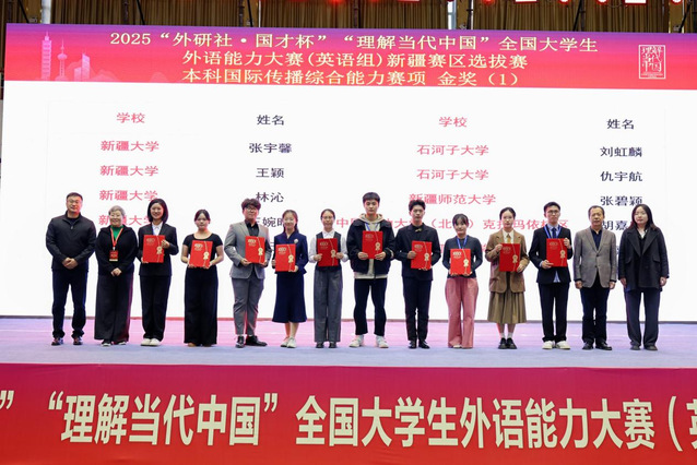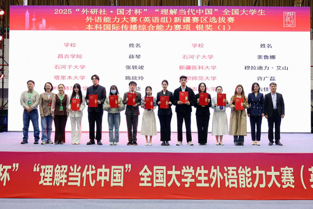 11月2日,由新疆维吾尔自治区教育厅与兵团教育局联合主办、石河子大学承办的2025“外研社·国才杯”“理解当代中国”全国大学生外语能力大赛(英语组)新疆赛区选拔赛圆满落幕。作为承办单位,我校将讲好新疆故事,服务地方国际传播作为重要使命,聚焦“以语言为载体传播中国声音”,推动语言教育与国情教育、国际传播实践深度融合,打造具有中国特色、世界眼光的人才培养平台,引导广大青年用融通中外的语言,讲好中国故事,讲好新疆故事。