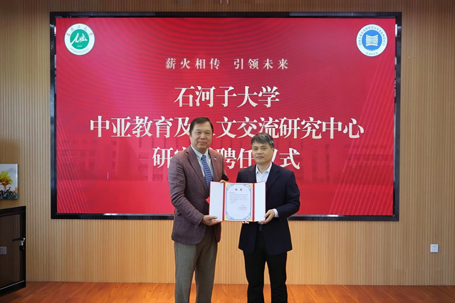 仪式上,梁修韦为苟皓东颁发石河子大学“马克思主义‘五观’‘五个认同’专题教育”特聘专家聘书。宋成方为其颁发石河子大学中亚教育及人文交流研究中心特聘研究员聘书。卿涛、张瑜分别为其颁发客座教授聘书。多项聘任荣誉的颁发,标志着苟教授与石河子大学的深度合作正式拉开帷幕。