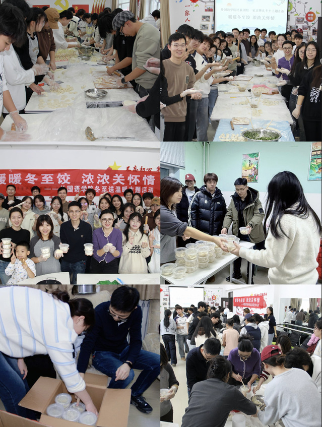 12月21日,学办老师与团委学生会干部携手包制饺子,饺子煮熟后,大家迅速分装打包,带着满满的心意前往各学生宿舍。不仅让学子们在校园中度过了一个温馨的传统节日,更以实际行动拉近了学院与学生的距离,让外国语学院的学子们在冬日里收获了满满的幸福感与归属感。